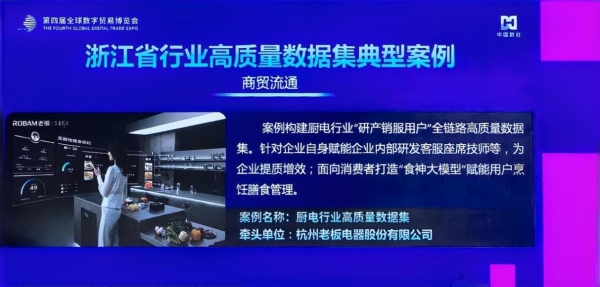 产权的明确也为数据的深度应用与推广扫清了障碍,在第四届全球数字贸易博览会上,老板电器“厨电行业高质量数据集”从众多申报项目中突围,入选浙江省第一批高质量数据集典型案例。此次入选案例覆盖工业制造、医疗、智能驾驶等重点领域,全省仅 16 家企业入围,而老板电器是其中唯一的厨电代表。按照浙江省“一地创新、全国复用”的改革要求,其数据建设经验将作为“人工智能+厨电”的典型样本向全国推广,为行业数字化转型提供一条被验证过的可行路径。