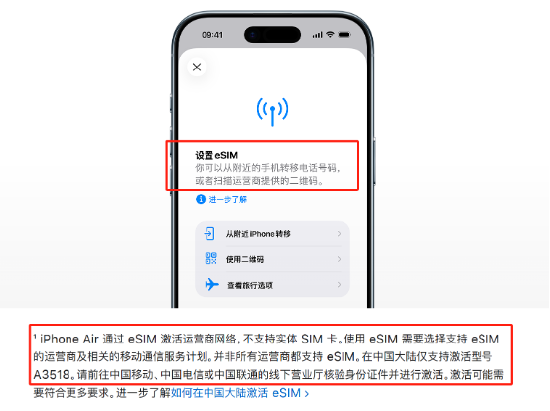 随后,伴随苹果中国官网更新iPhone Air发售信息,中国移动、中国电信和中国联通均可为iPhone Air提供eSIM支持的消息,也随之披露。